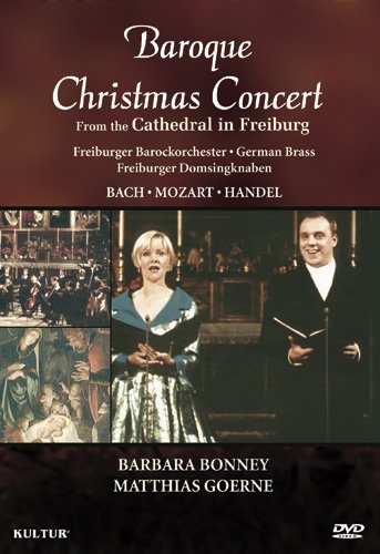 D4549 Baroque Christmas Concert - From the Cathedral in Freiburg A baroque Christmas concert set in the cathedral in Freiburg. Includes music from J.S. Bach: Concerto in D Major, BWV 972 Allegro, and Suite in D Major, BWV 1068 Air, W.A. Mozart: Mass in C Minor, KV 427, and G.F. Handel: Messiah. This DVD is a concert of Christmas music by Bach, Mozart and Handel, featuring two fine soloists, Barbara Bonney and Mathias Goerne. The pieces are all excerpts from large works - from Bach's Christmas Oratorio, from Handel's Messiah, and others.